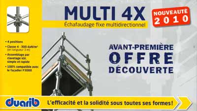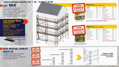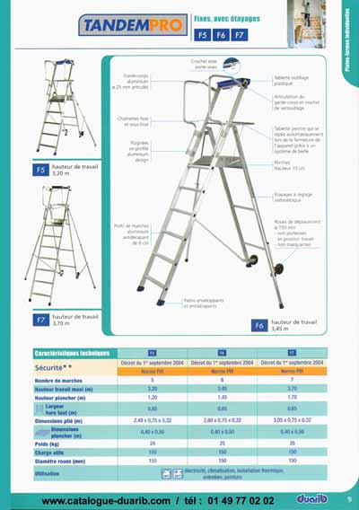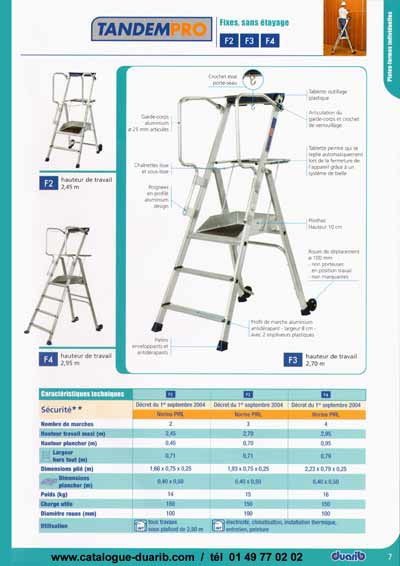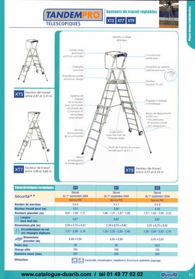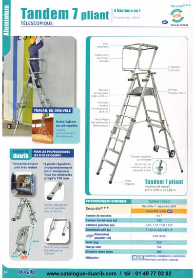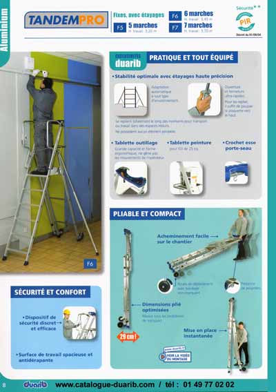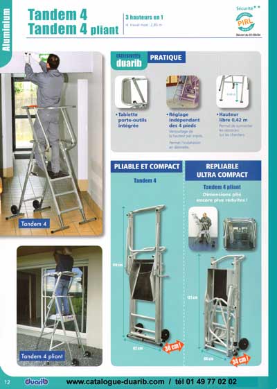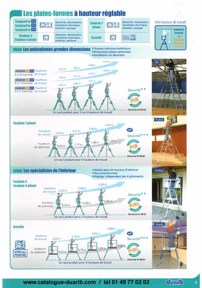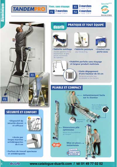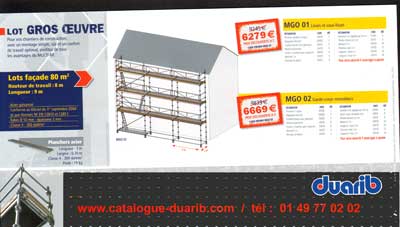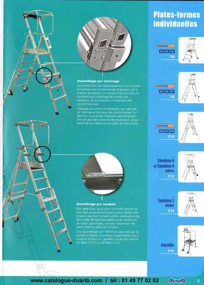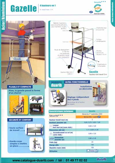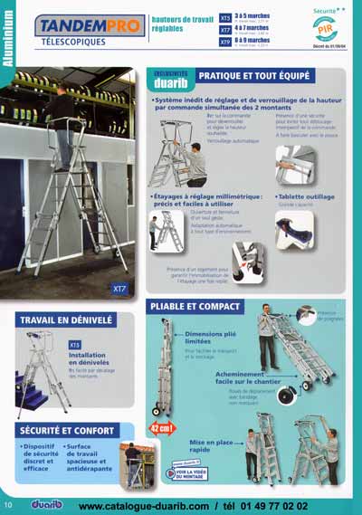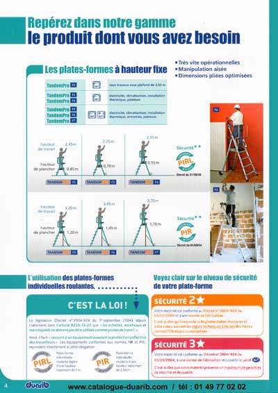 catalogue DUARIB 2012 d' échafaudages roulants aluminium et acier ainsi que les plates-formes individuelles roulantes de sécurité PIR, PIRL . et autres |