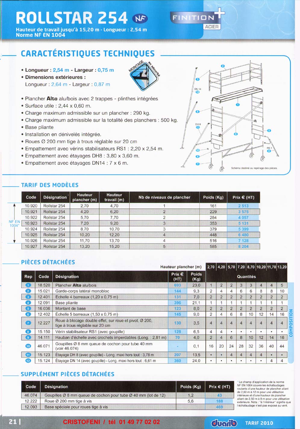 page n° 21 et 22 du catalogue DUARIB , Optiroll . d' échafaudages roulants aluminium et acier