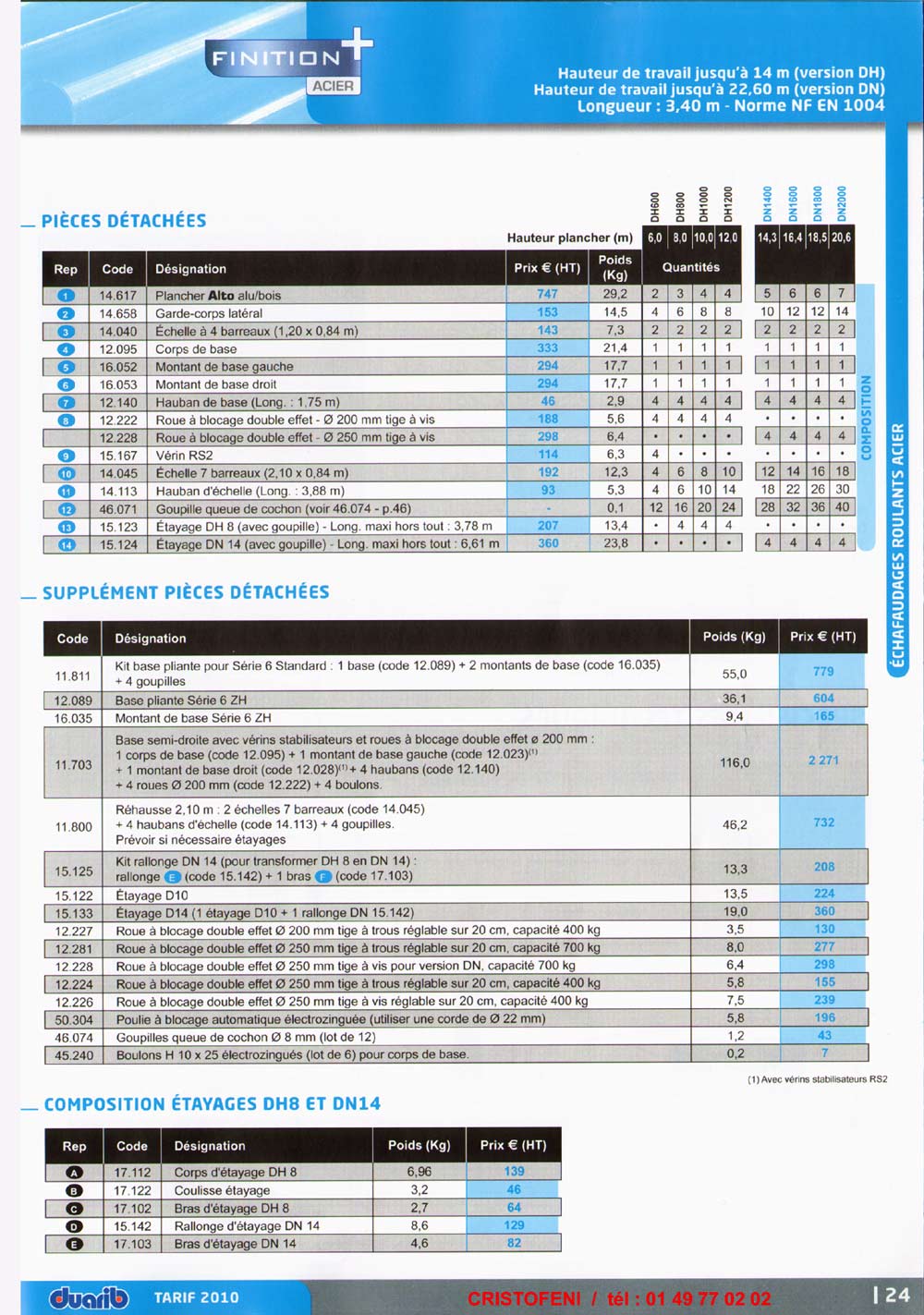 page n° 23 et 24 du catalogue DUARIB ,du SERIE 6l . d' échafaudages roulants aluminium et acier