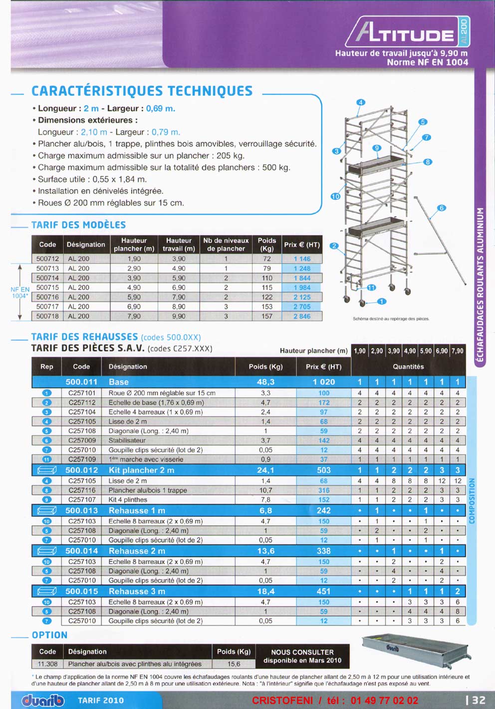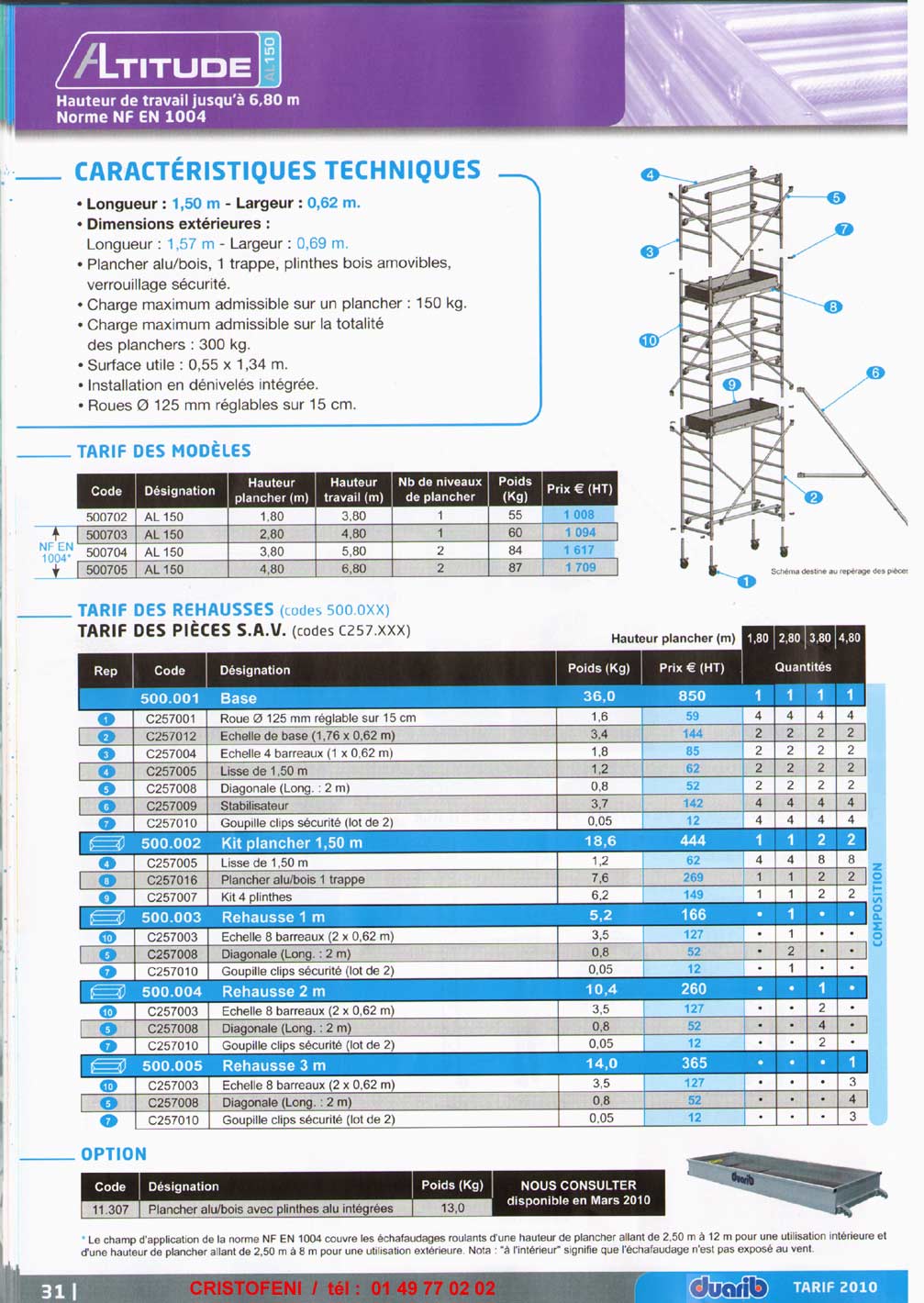 page n° 31 et 32 du catalogue DUARIB , de l' ALTITUDE 150 & 200 . d' échafaudages roulants aluminium et acier