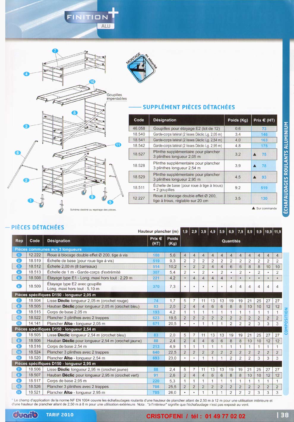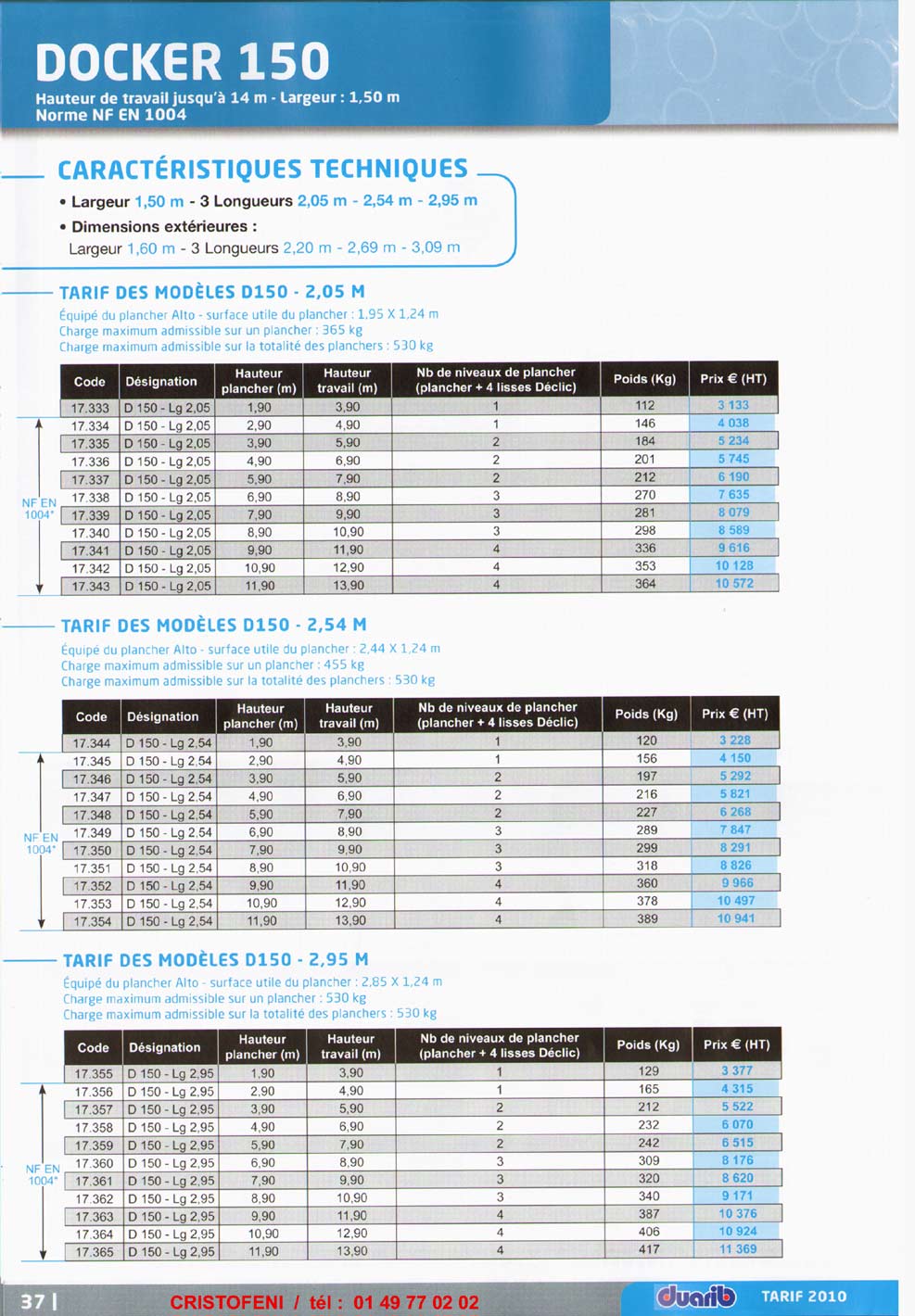 page n° 37 et 38 du catalogue DUARIB , du DOCKER 150 . d' échafaudages roulants aluminium et acier