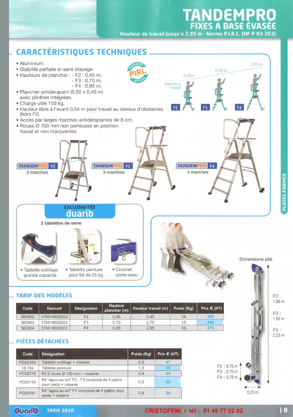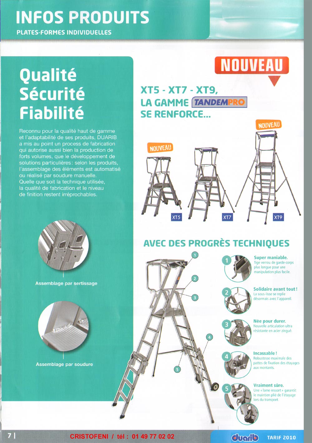 page n° 7 et 8 du catalogue DUARIB d' échafaudages roulants aluminium et acier