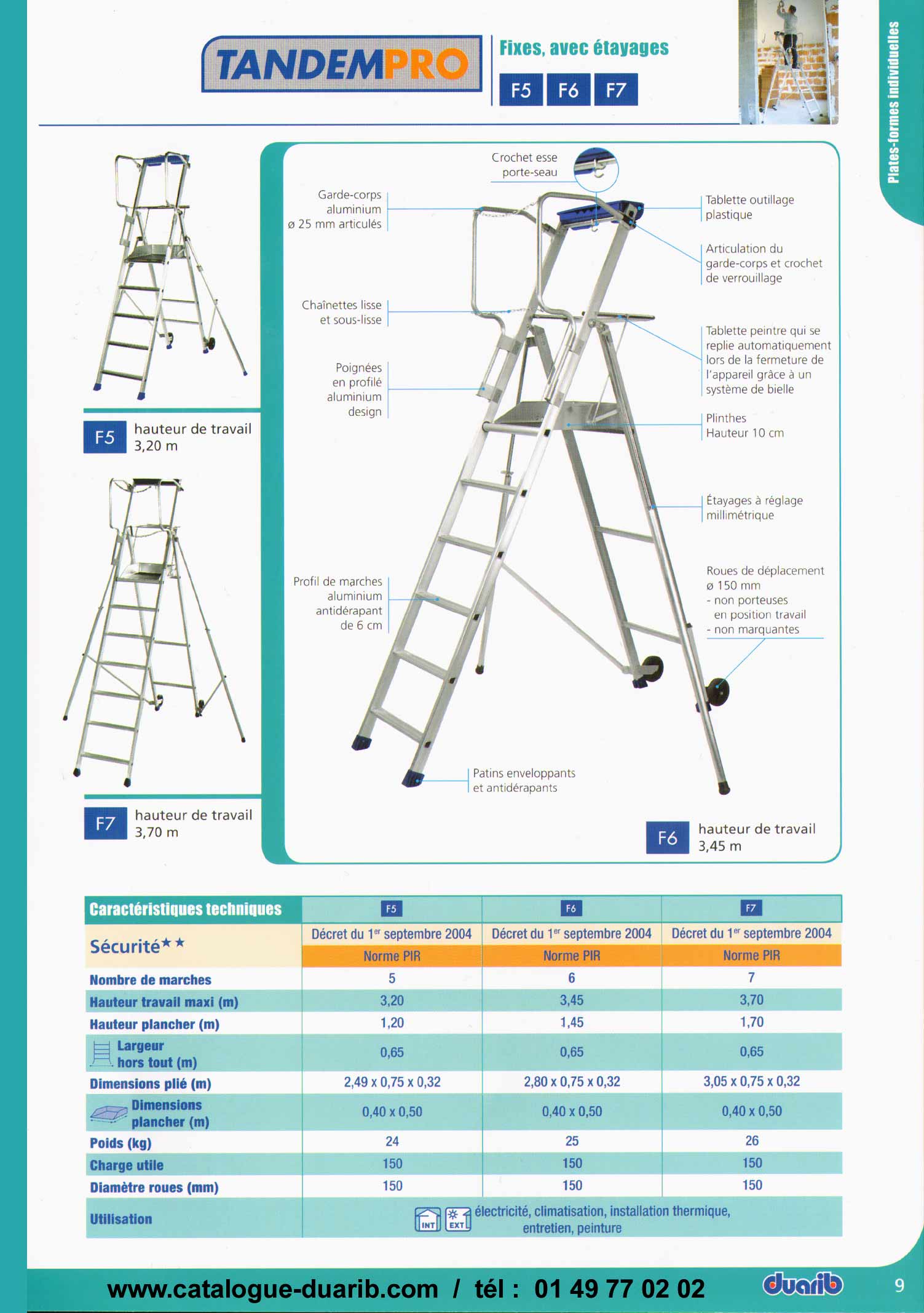 les échafaudages aluminium, échafaudage aluminium Comabi duarib , prix des échafaudages aluminium comabi duarib sont visibles dans le catalogue duarib ainsi que les prix des échafaudages aluminium mais aussi les prix des échafaudages acier pour façade donc pour façadier, pour peintre, pour maçon, pour couvreur, dans toutes les hauteurs. Les échafaudages fixes R200 sont aux nouvelles normes européennes EN12810 et 12811 conforme au décrêt 01/09/2004. Nous vous proposons des échafaudages aluminium starlium idéal pour un travail en façade ou sous plafond, les géréris en acier, hauteur plateau 6 mètre, -6 m, 7 mètres, 7 m, 8 m, 8 mètres, 9 m, 9 mètres, 10 m, 10 mètres, 11 m, 11 metres, 12 métres, 12 m, 13 m, 13 métres, 14 m, 14 mètres, 15 m, 15 mètres, 16 m, 16 mètres, 17 m, 17 mètres, 18 m, 18 mètres. Vous trouverez également des gazelles ou tétris, socles à vis articulé pour départ d'échafaudage, filets de protection, des colliers orientables, amarrges chevilles, amarrage vérins, plancher alu, plancher alu-bois, placher acier. La tour escalier 3 m x 1.50 mètres de large de type solidium, des monte-matérieux pour couvreur, plaquiste, pour maçon à des prix très intéressants.